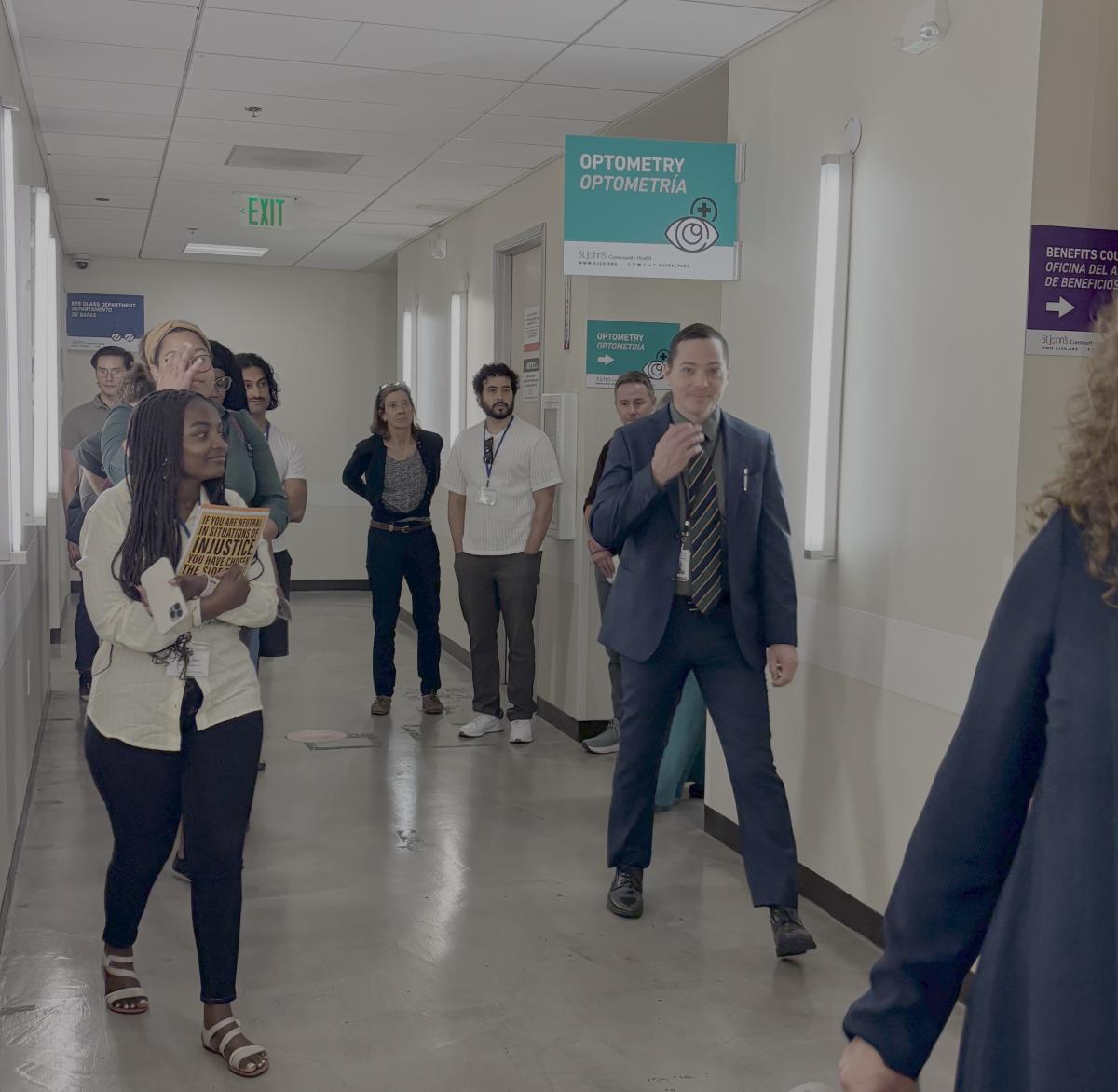 Journalists tour a clinic at St. John's Community Helath in LA while taking part in the Center for Health Journalism's 2026 California Health Equity Fellowship.
