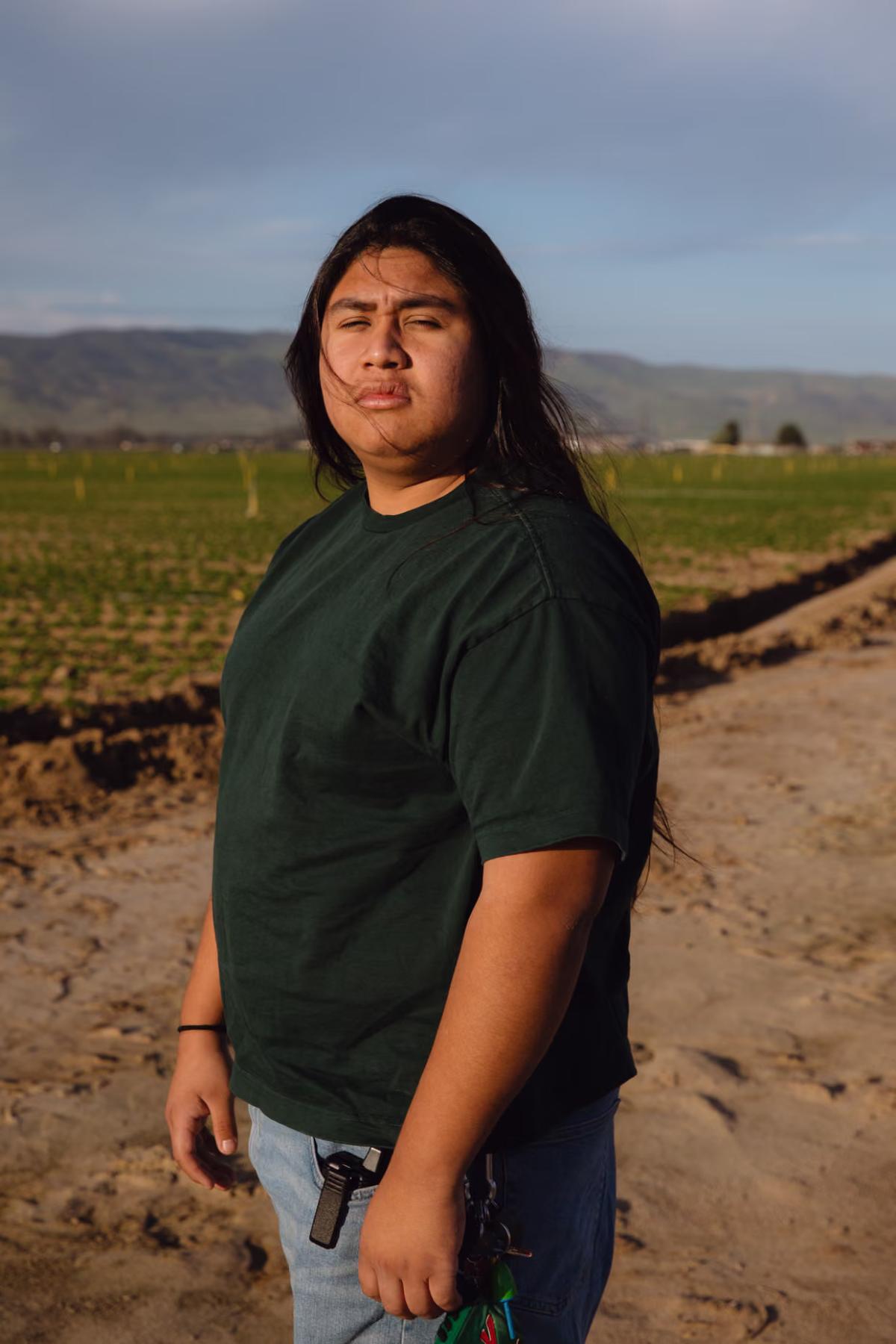 Cesar Vasquez, 18, stands in the fields where his mother and sisters once harvested crops. His work advocating for immigration rights is deeply connected to his family’s immigrant journey.