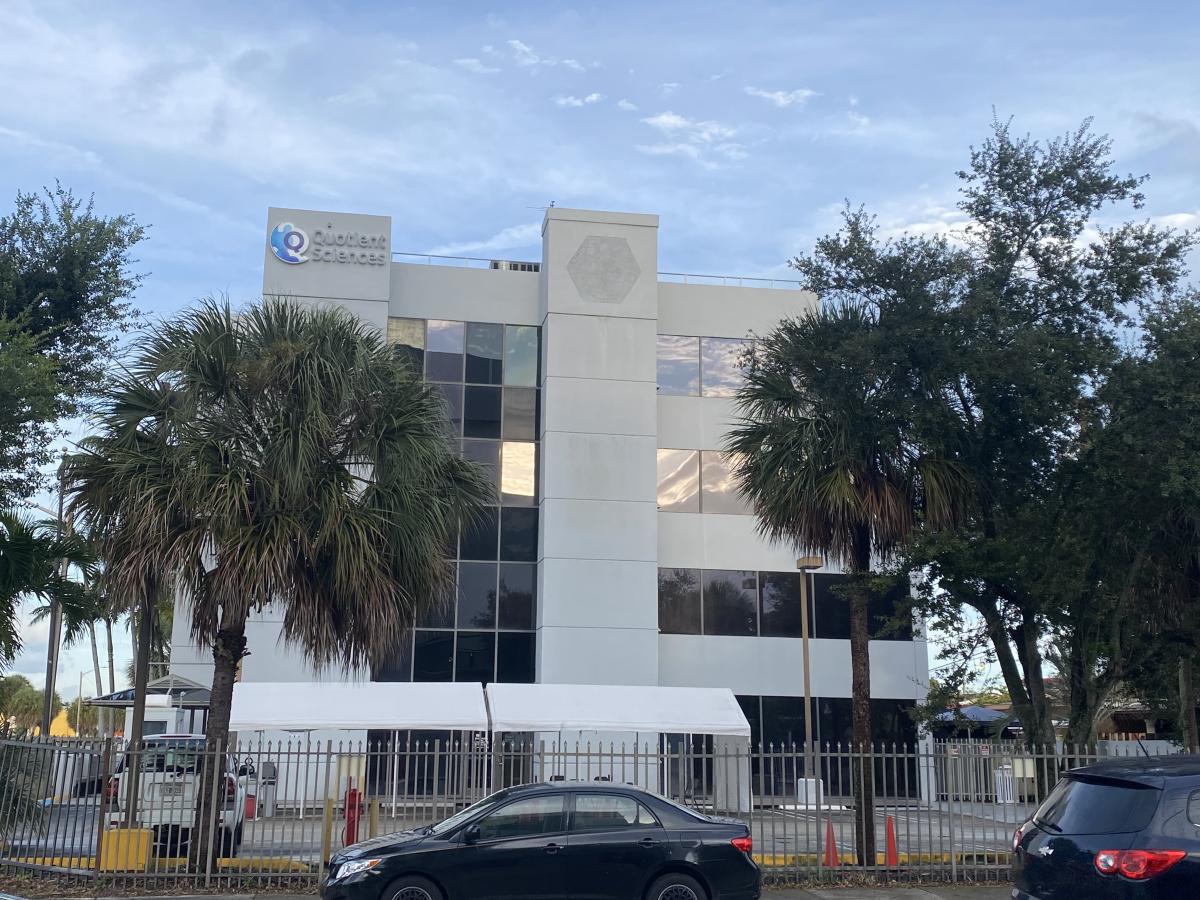 Exterior de la clínica Quotient Sciences en Miami, Florida.