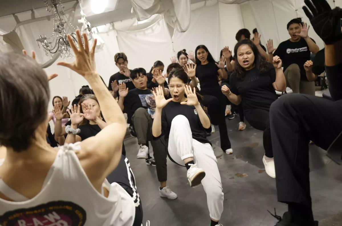 Umarin Wachter, who runs Hollywood Career College, said she once had a client grab her arms and try to pull her on top of him. Gold showed the class how to use their elbows and body weight to pull away from a client while shouting, “Let go of me!”