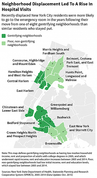 But being poor in a rapidly gentrifying neighborhood, or being priced out of such a neighborhood and moving into a poorer one, has its own unique health challenges.